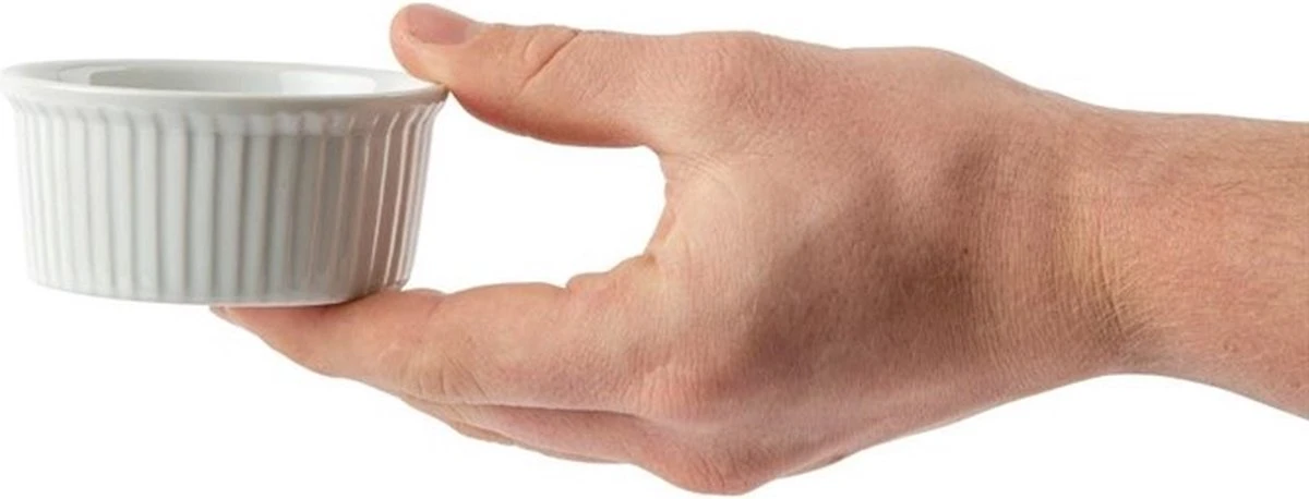 De veelzijdige ramekin (9cm) van Olympia is van wit porselein met een geribbelde buitenrand en perfect voor het maken van soufflé, creme brulee en andere ovengerechten. Omdat hij geschikt is voor in de oven, magnetron, vaatwasser en vriezer is hij multifunctioneel en ook nog eens erg gemakkelijk in onderhoud.