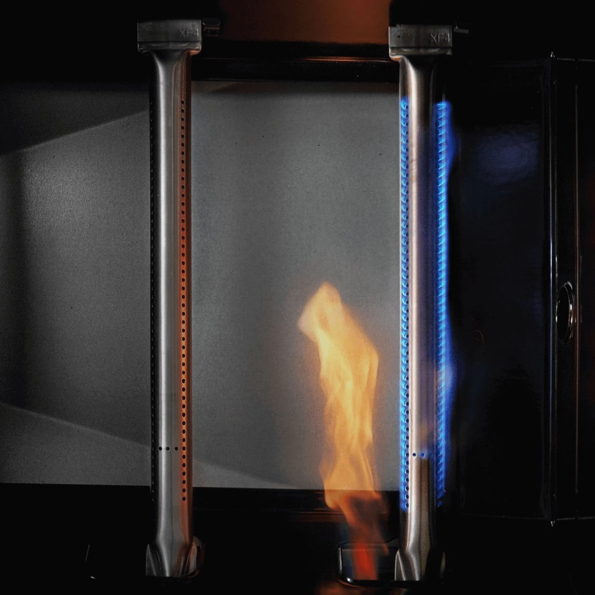 Wil je ongetemde hitte en jouw schatje van de slagerij een schandalig knapperige korst geven? Big FRED wordt geleverd met een traploos regelbare keramische infraroodbrander (3,5 kW) die jouw steaks en andere etenswaren met max. 900 °C het vuur na aan de schenen legt._x000D_3 traploos instelbare roestvrijstalen branders verhitten jouw etenswaren flink met een vermogen van 10,5 kW. Piëzo-ontstekingen starten elke brander eenvoudig en in een handomdraai op.