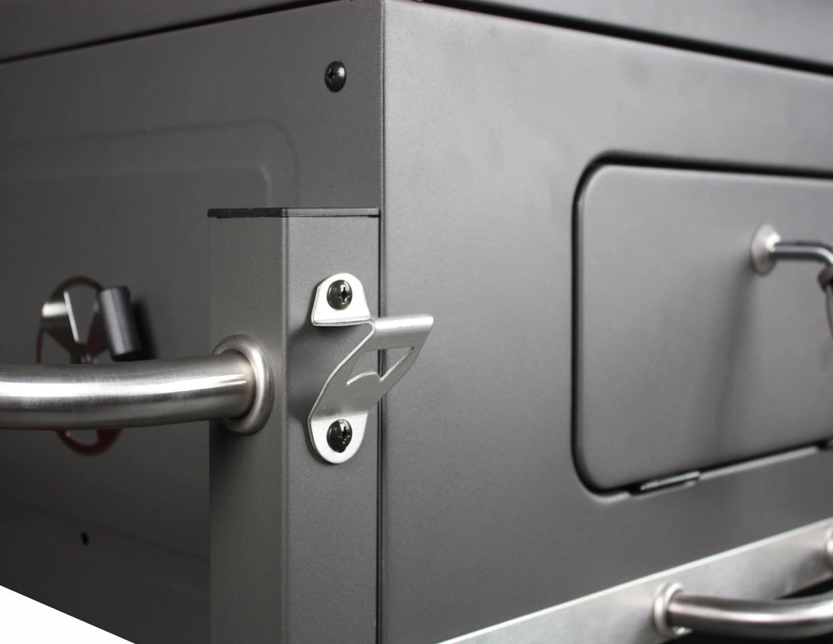 De Fire Beam Montreal barbecue is voorzien van een flesopener en handige haken om kookgerei op te hangen.