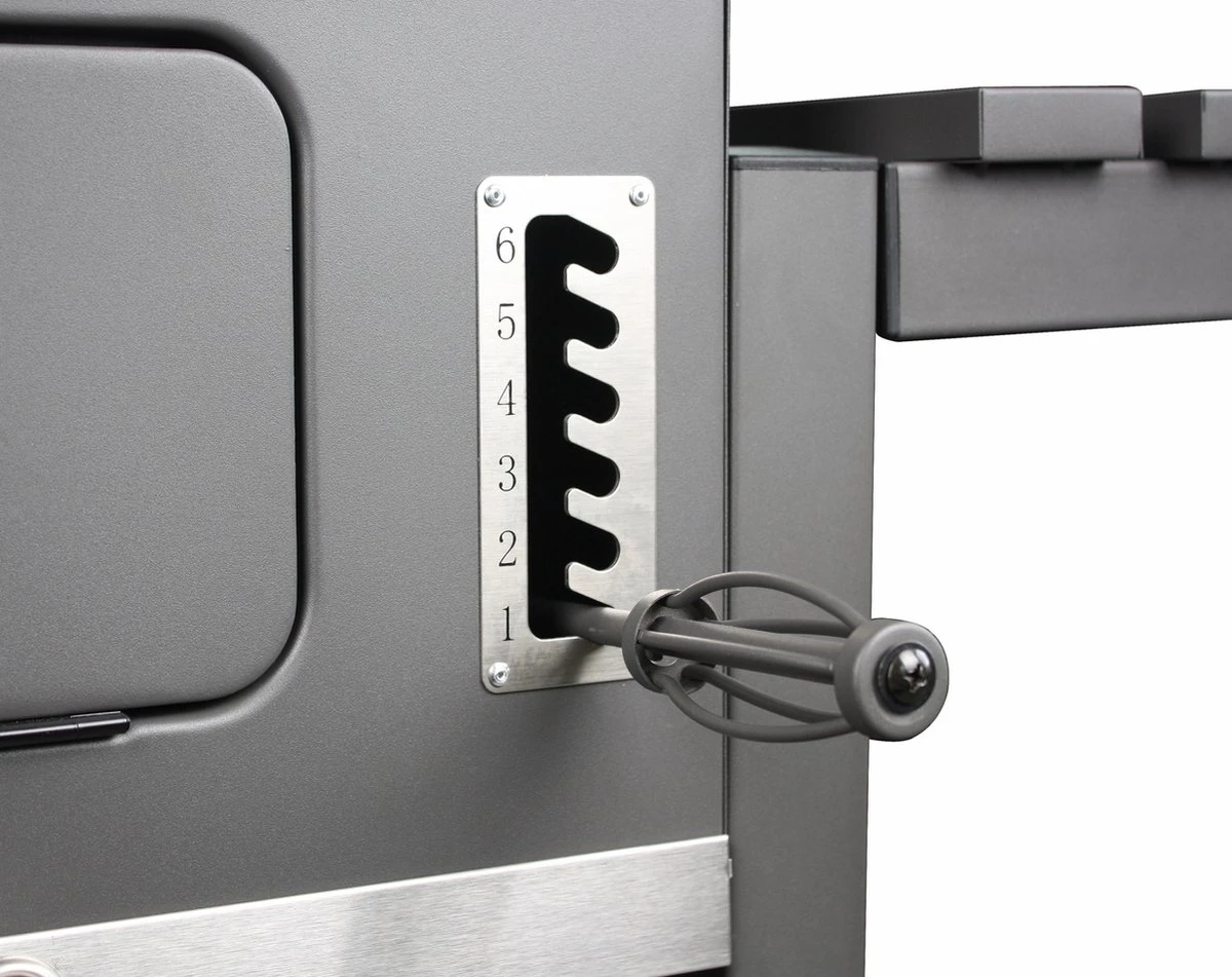 De barbecue heeft een handige zijtafel die bijvoorbeeld gebruikt kan worden om eten voor te bereiden of stokbroden te snijden.